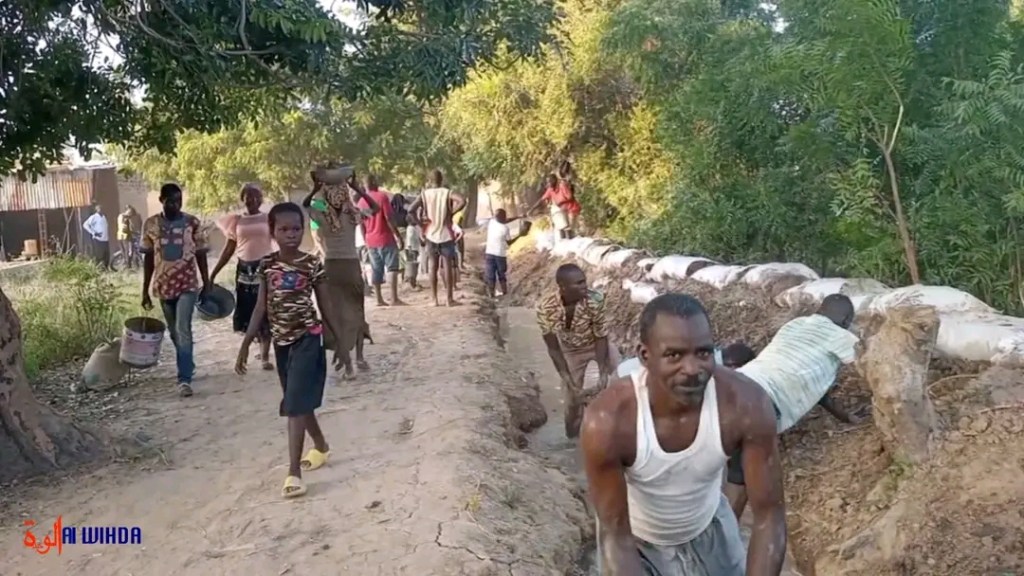 N’Djamena : la population poursuit le travail de renforcement des digues ce dimanche, à l’Est du 9ème arrondissement, face à la crue du fleuve. #Tchad