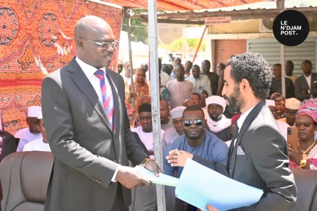 Passation de service : Mahmoud Ali Seid passe la main aux deux ministres entrant dans le département de la Jeunesse et des sports. PATALET Geo pour le Ministère des Sports et des Loisirs et Mahamat Ahmat Lazina pour le Ministère de la Jeunesse et du Leadership Entrepreneurial. #Tchad